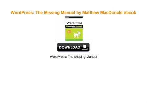 Read Online wordpress the missing manual matthew macdonald Audio CD BookBoon